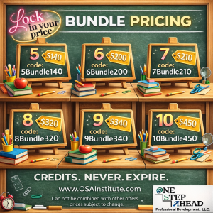 Yes! Any of our inservice courses can be modified for 1 credit. It will be $90 for a 1 credit class. Email us prior to purchase and we’ll give you a coupon code to adjust payment. registrar@OSAinstitute.com
